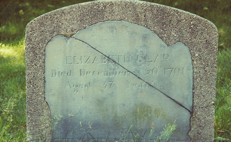 The ground is slightly undulant, but fairly level. Gravestones are generally plumb and level; sinking and tilting do not contribute significantly to a need for extensive resetting. There is much evidence of past attempts to repair and consolidate the old slates. Approximately 32 gravestones have been encapsulated in cement holders; these have all failed or are failing. Many stones were “fixed” using an unknown adhesive; these repairs have all failed or are failing. In addition, several markers were held together with bolted iron hardware which is corroding, expanding, and causing further fractures.